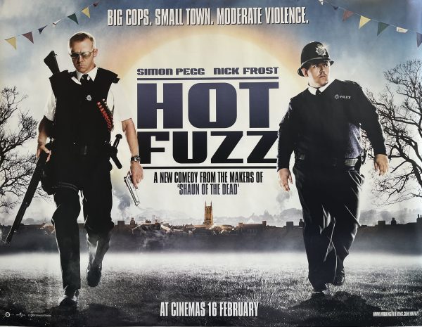 Introducing this UK Quad poster for Hot Fuzz starring Simon Pegg and Nick frost. An overachieving London police sergeant is transferred to a village where the easygoing officers object to his fervor for regulations, all while a string of grisly murders strikes the town.
